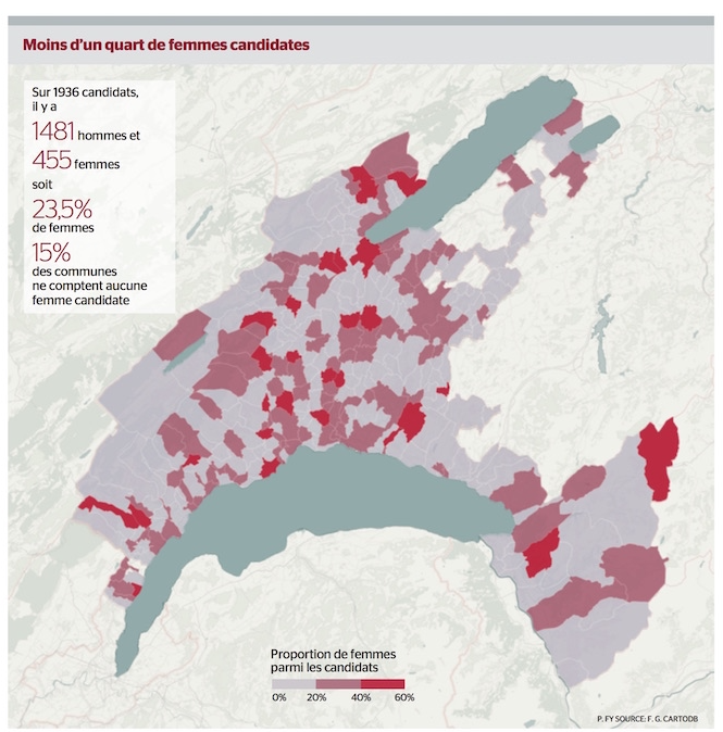 Point fort: Analyse, carte interactive, témoignages et politiciennes.ch dans le 24 heures du jour. Article paru le 15 février 2016 dans le 24 heures. Disponible en ligne, avec une carte interactive http://www.24heures.ch/vaud-regions/communales2016/minorite-femmes-listes-electorales/ … ou en pdf par ici http://archives.politiciennes.ch/wp-content/uploads/2016/02/24heures-15-f%C3%A9vrier.pdf